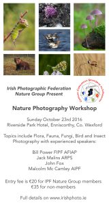 The IPF Nature Group and the Dublin and South Leinster Region propose to run a full day Macro Photography and Focus Stacking Workshop in Palmerston Parish Hall on Saturday the 27th […]
