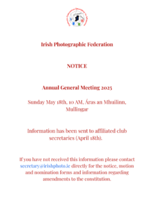 The Irish Photographic Federation in association with Canon will host the National Club Championships 2024 on Sat 18th & Sun 19th May 2024 in Áras An Chontae, Mount St, Mullingar, Co. Westmeath. This is a print competition. Please see below relevant information […]